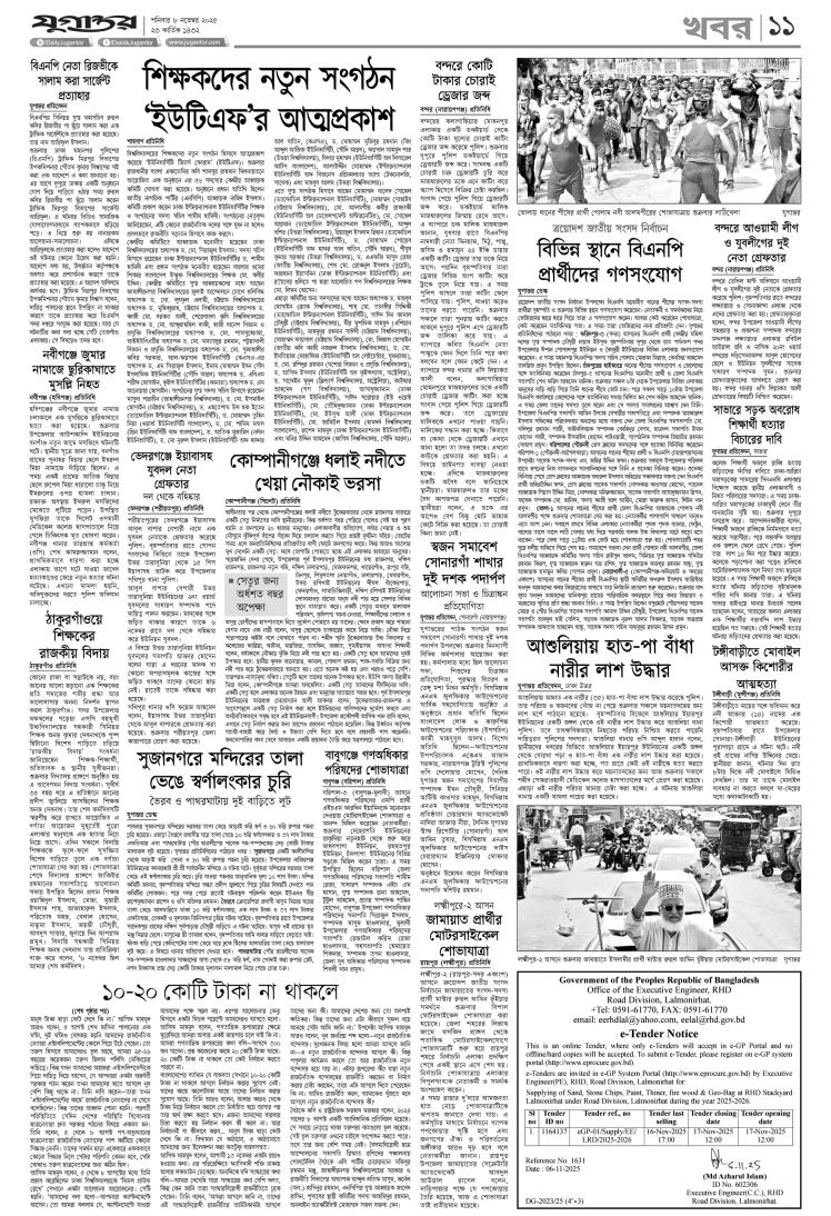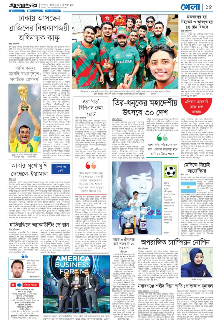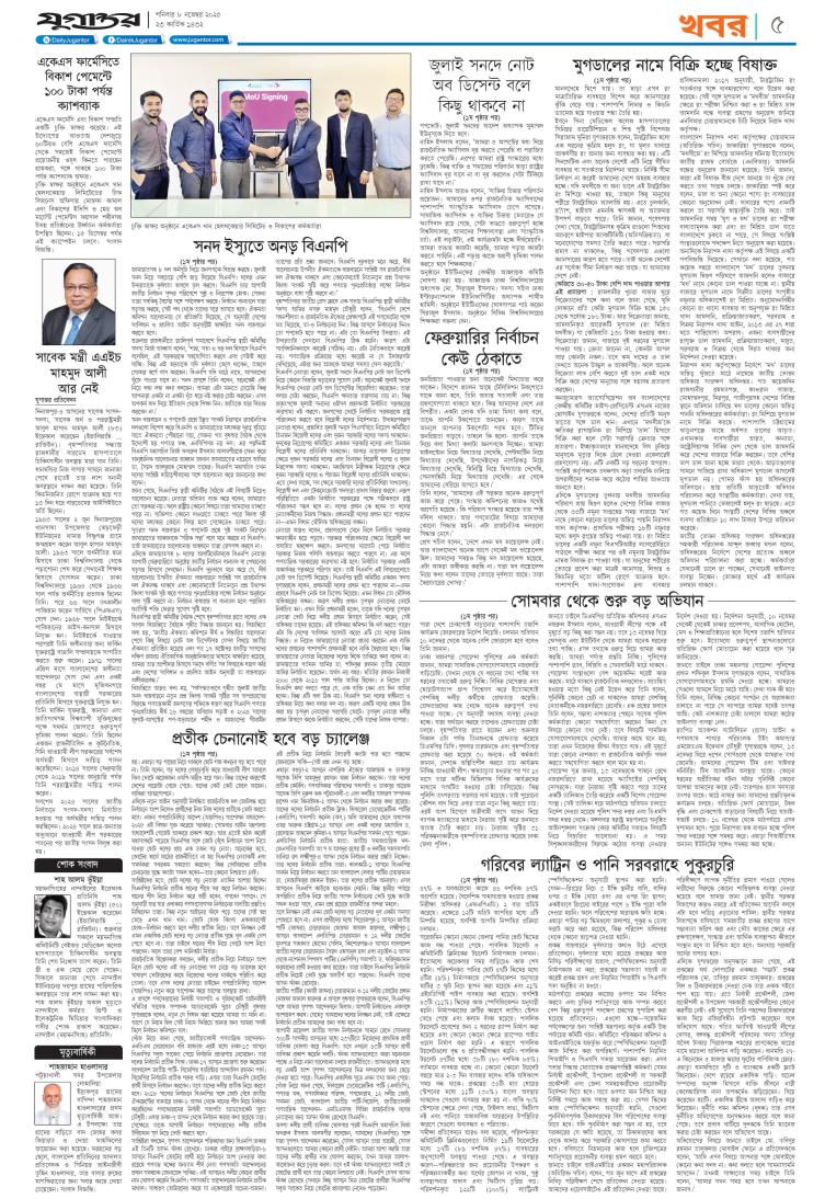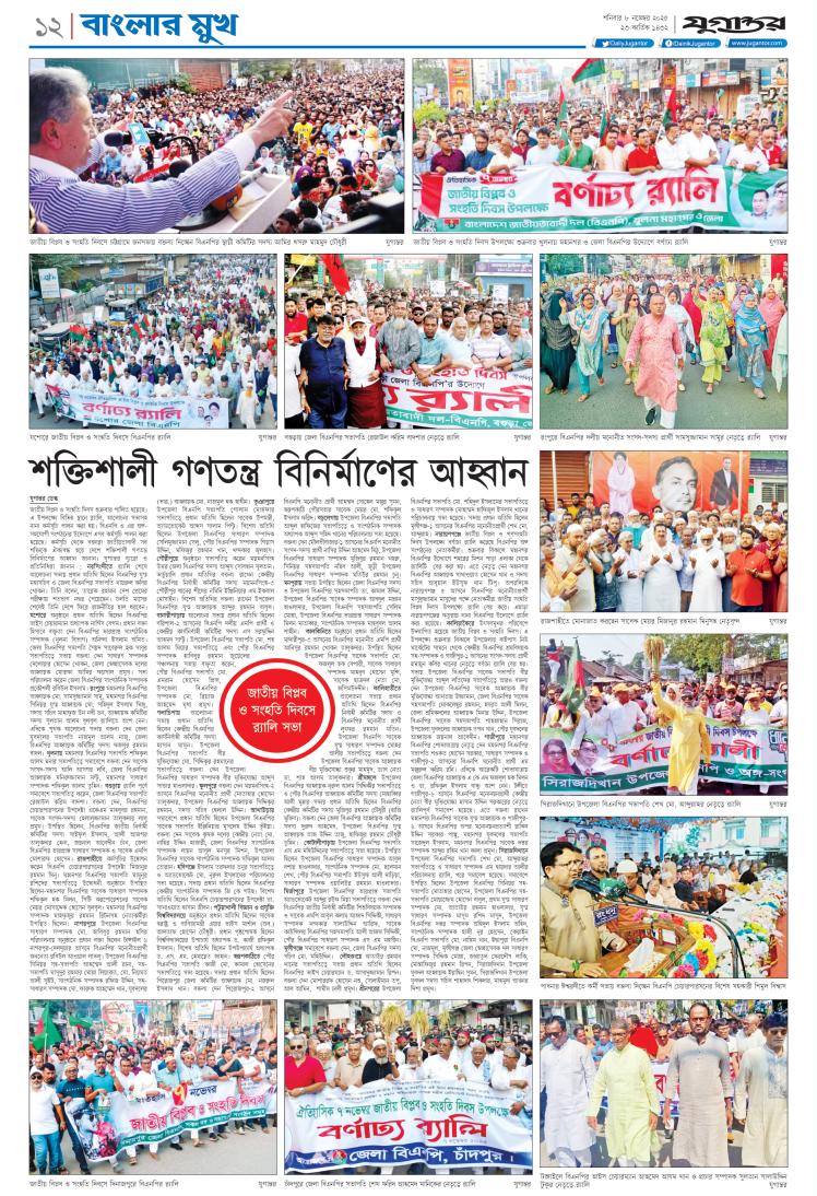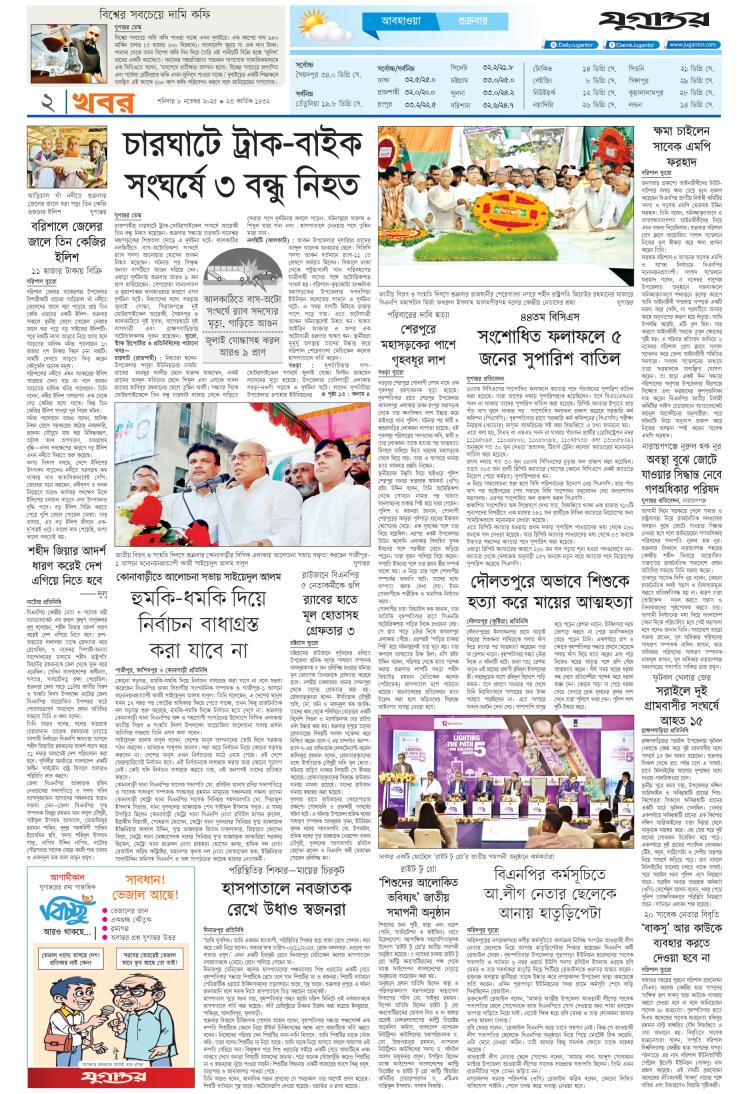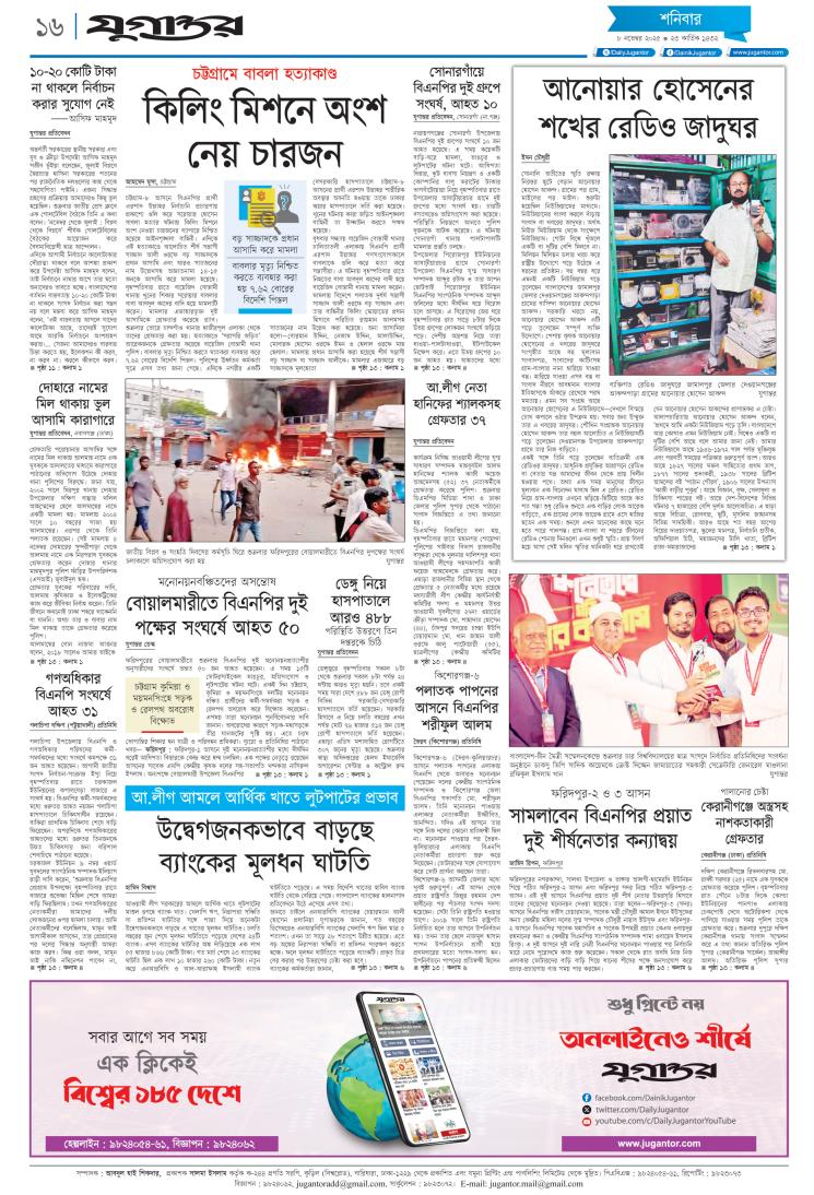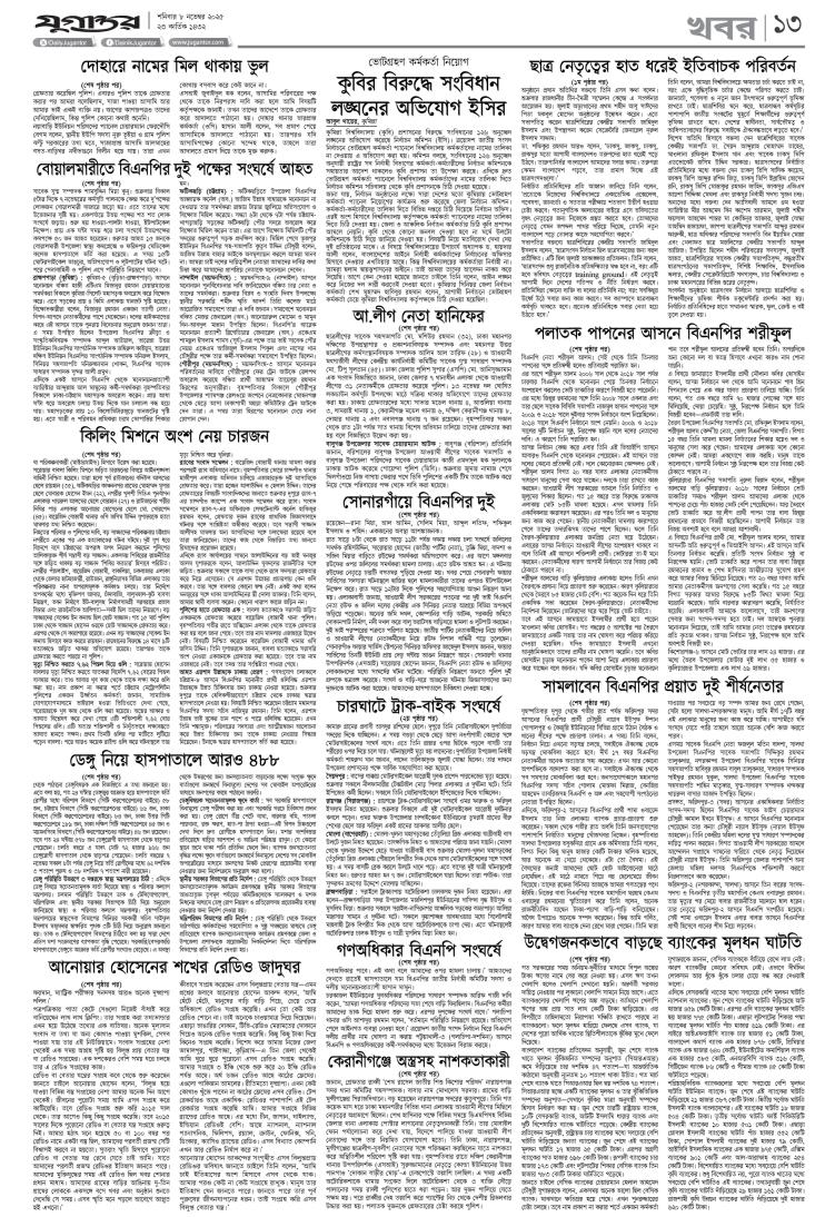১. প্রথম পাতা ২.খবর ৩. নগর মহানগর ৪. সম্পাদকীয় ৫. খবর ৬. খবর ৭. সকাল বেলার পাখি ৮. দশদিগন্ত ৯. সুস্থ থাকুন ১০. রাজধানী ১১. খবর ১২. বাংলার মুখ ১৩. খবর ১৪. আনন্দ নগর ১৫. খেলা ১৬. শেষ পাতা