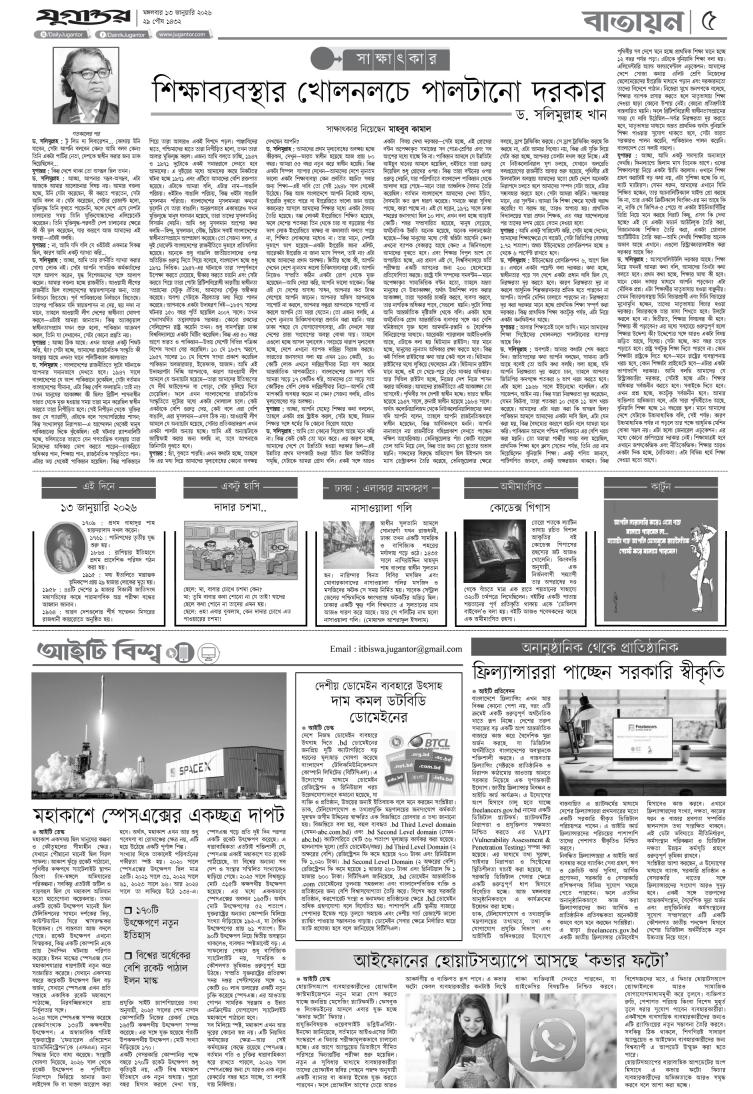 মঙ্গলবার, ১৩ জানুয়ারি ২০২৬