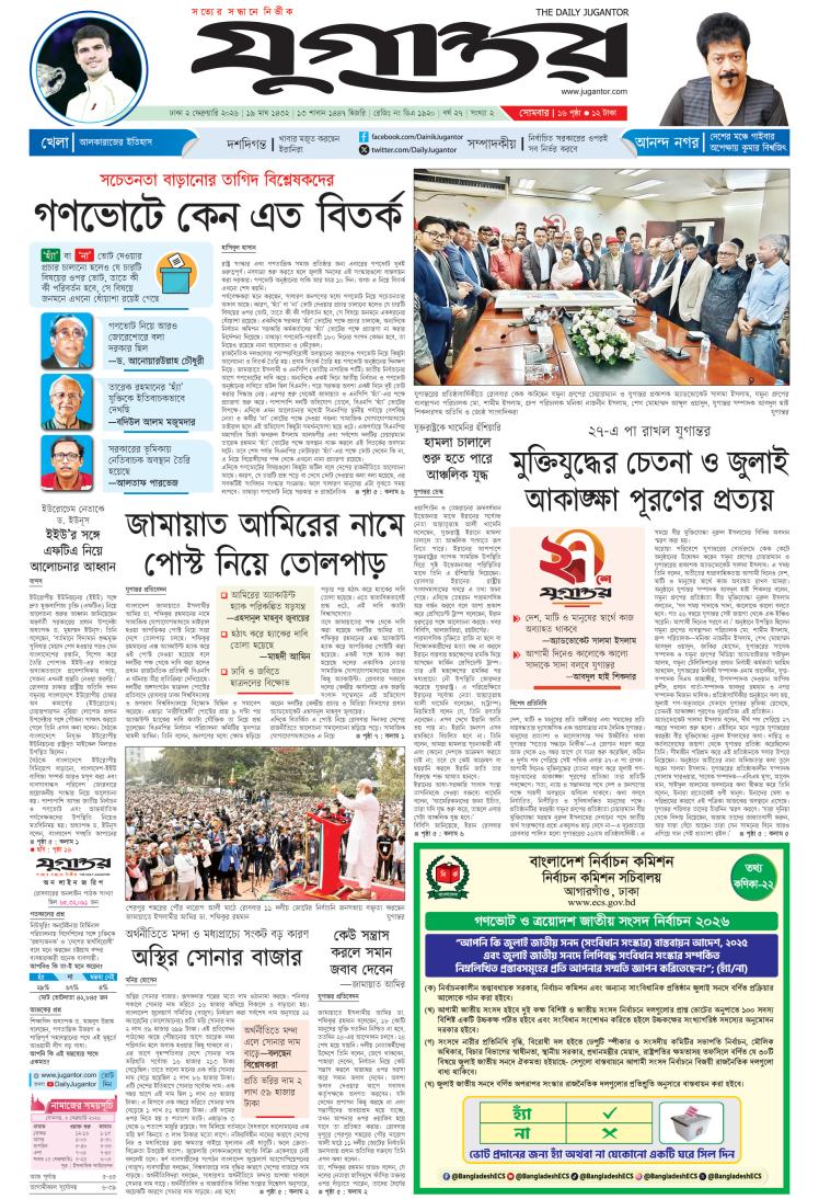সর্বস্বত্ব স্বত্বাধিকার সংরক্ষিত © যুগান্তর ২০২৬