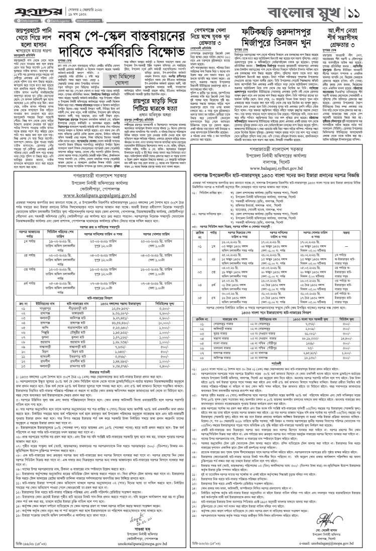 ১. প্রথম পাতা ২.খবর ৩. নগর মহানগর ৪. সম্পাদকীয় ৫. খবর ৬. খবর ৭. খবর ৮. দশদিগন্ত ৯. স্বজন সমাবেশ ১০. বাংলার মুখ ১১. বাংলার মুখ ১২. বাংলার মুখ ১৩. খবর ১৪. আনন্দ নগর ১৫. খেলা ১৬. শেষ পাতা