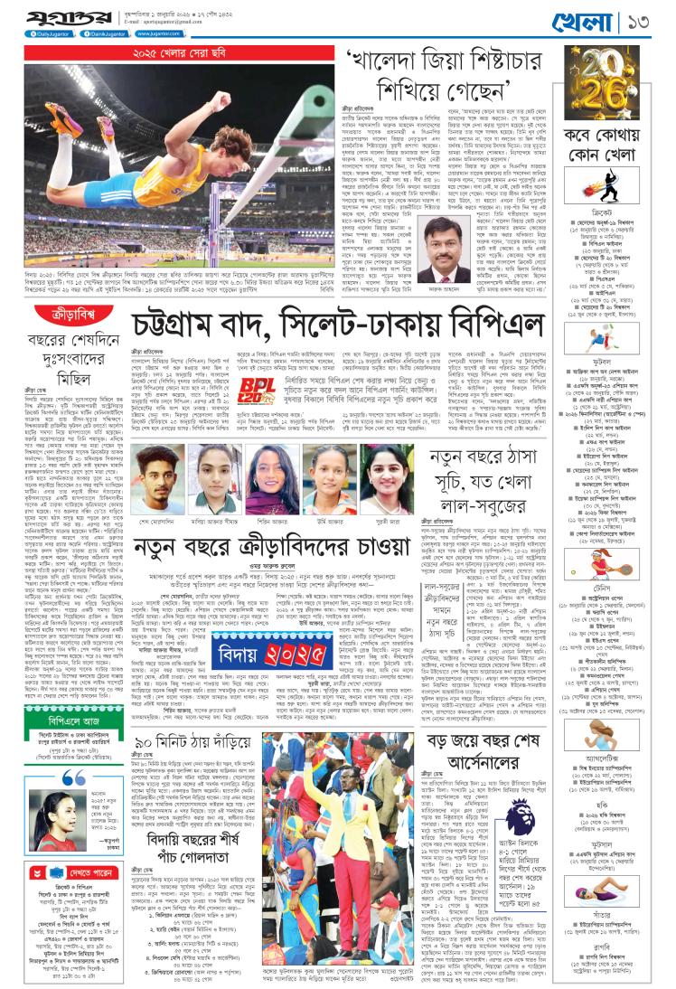 মলাট ১ মলাট ২ ১. প্রথম পাতা ২.সম্পাদকীয় ৩.খবর ৪. খবর ৫. খবর ৬. দশদিগন্ত ৭.হ্যাপি নিউ ইয়ার ২০২৬ ৮. বাংলার মুখ ৯. বাংলার মুখ ১০. বাংলার মুখ ১১. খবর ১২.আনন্দ নগর ১৩. খবর ১৪. শেষ পাতা