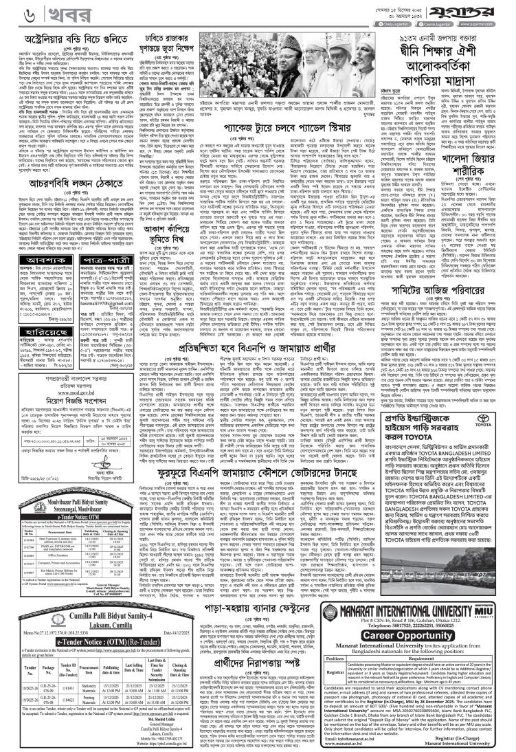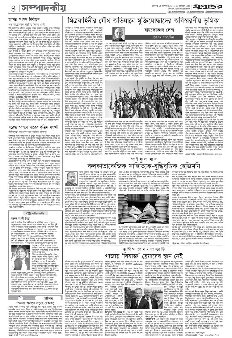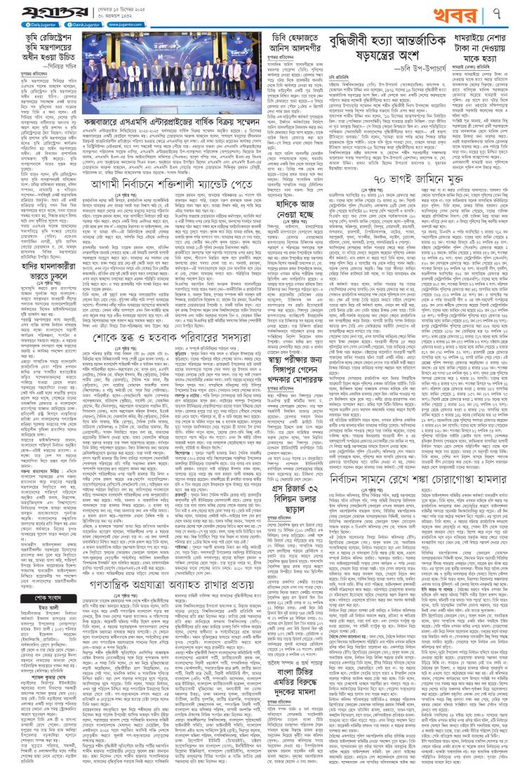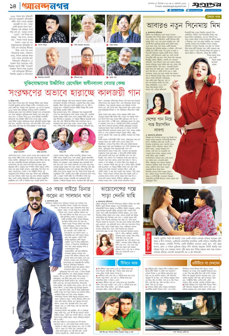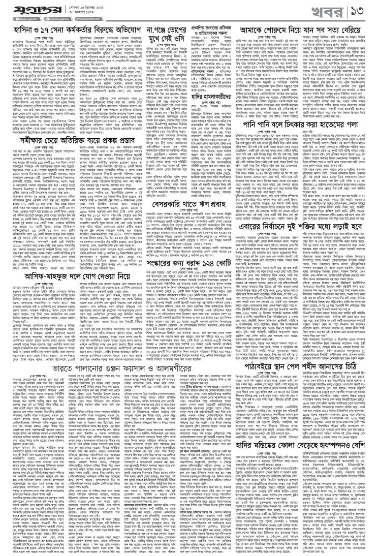 ১. প্রথম পাতা ২.খবর ৩. নগর মহানগর ৪. সম্পাদকীয় ৫. বাতায়ন ৬. খবর ৭. খবর ৮. দশদিগন্ত ৯. সুরঞ্জনা ১০. বাংলার মুখ ১১. বাংলার মুখ ১২. বাংলার মুখ ১৩. খবর ১৪. আনন্দ নগর ১৫. খেলা ১৬. শেষ পাতা