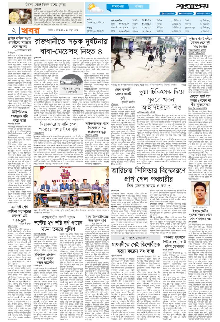 ১. প্রথম পাতা ২.খবর ৩. নগর মহানগর ৪. সম্পাদকীয় ৫. খবর ৬. খবর ৭. খবর ৮. দশদিগন্ত ৯. বিচ্ছু ১০. বাংলার মুখ ১১. বাংলার মুখ ১২. বাংলার মুখ ১৩. খবর ১৪. আনন্দ নগর ১৫. খেলা ১৬. শেষ পাতা