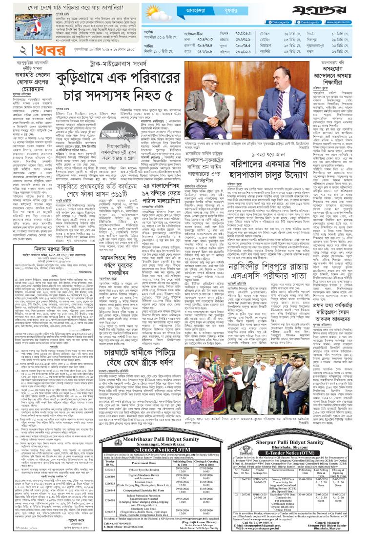 বৃহস্পতিবার, ৩০ এপ্রিল ২০২৬