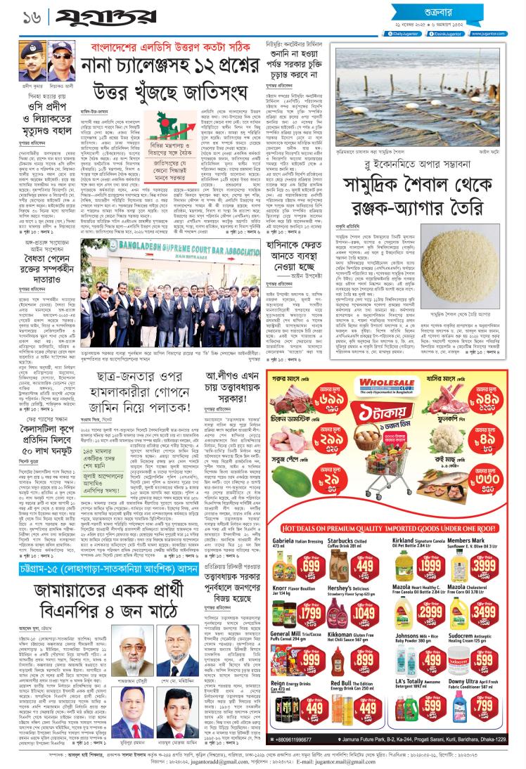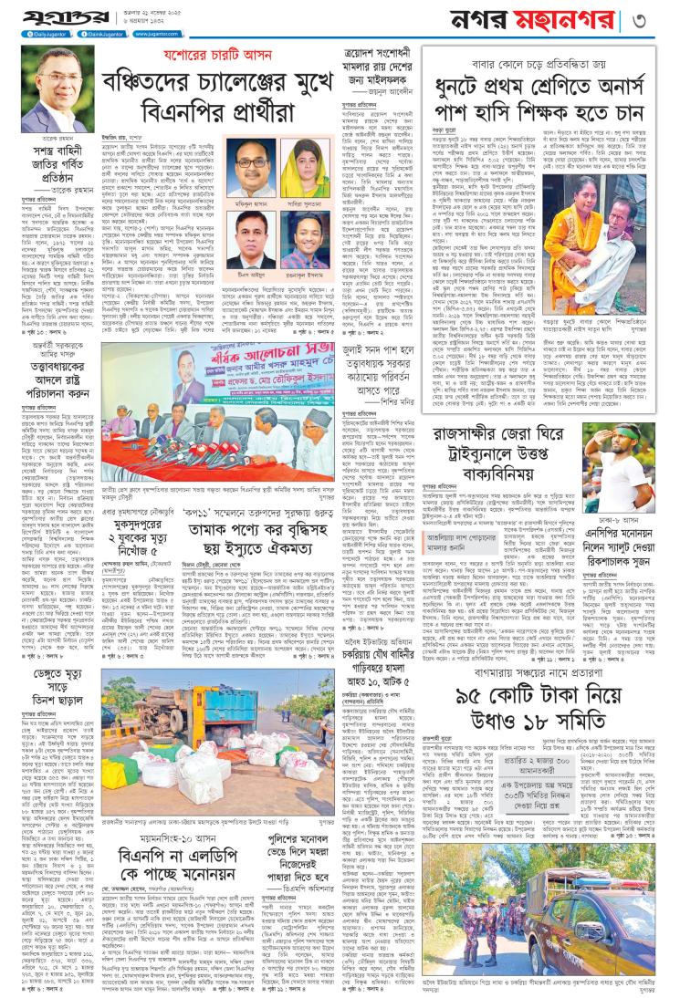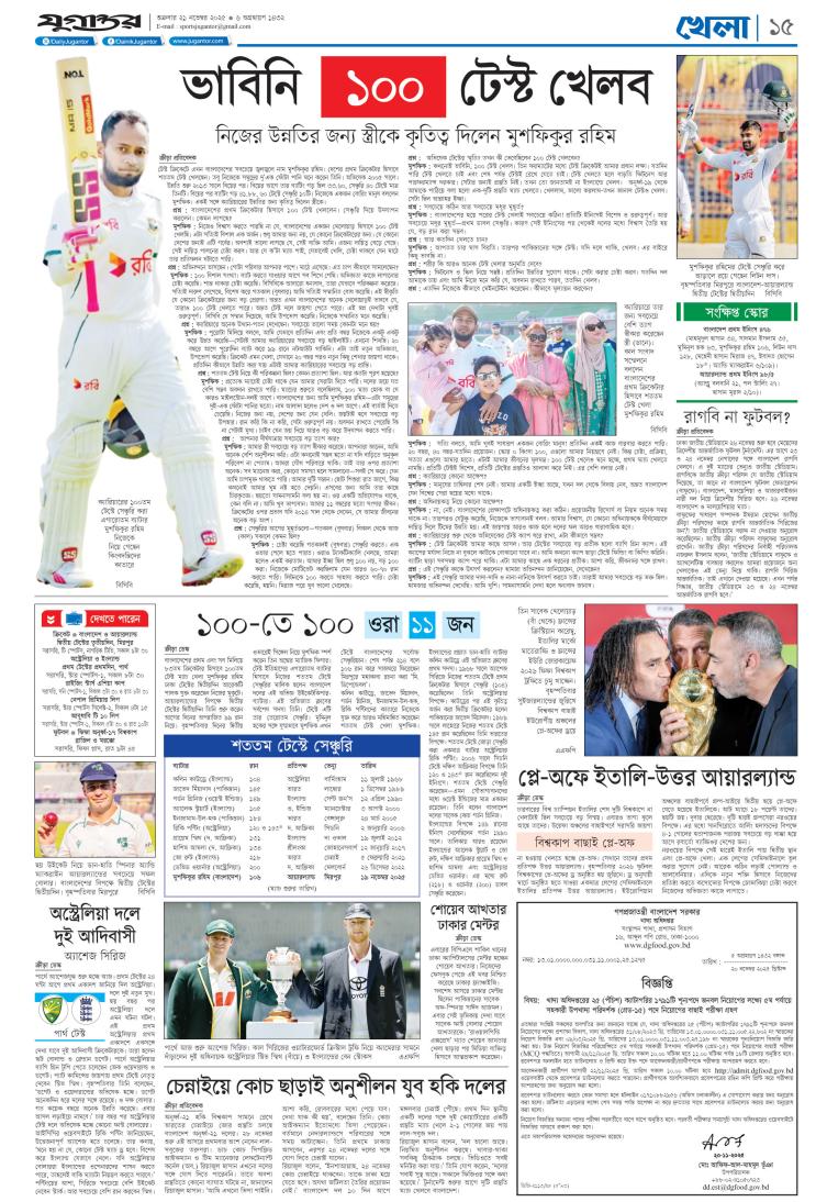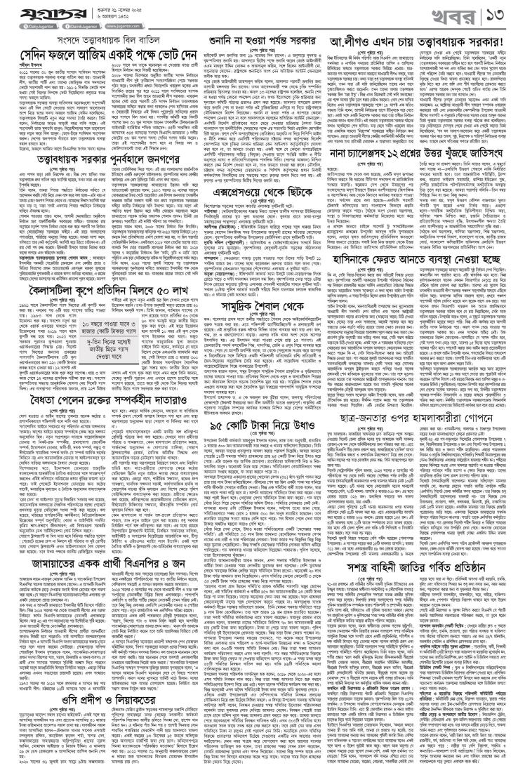 ১. প্রথম পাতা ২.খবর ৩. নগর মহানগর ৪. সম্পাদকীয় ৫. খবর ৬. খবর ৭. ইসলাম ও জীবন ৮. বিজ্ঞাপন ৯. বিজ্ঞাপন ১০. বাংলার মুখ ১১. খবর ১২. বাংলার মুখ ১৩. খবর ১৪. দশদিগন্ত ১৫. খেলা ১৬. শেষ পাতা