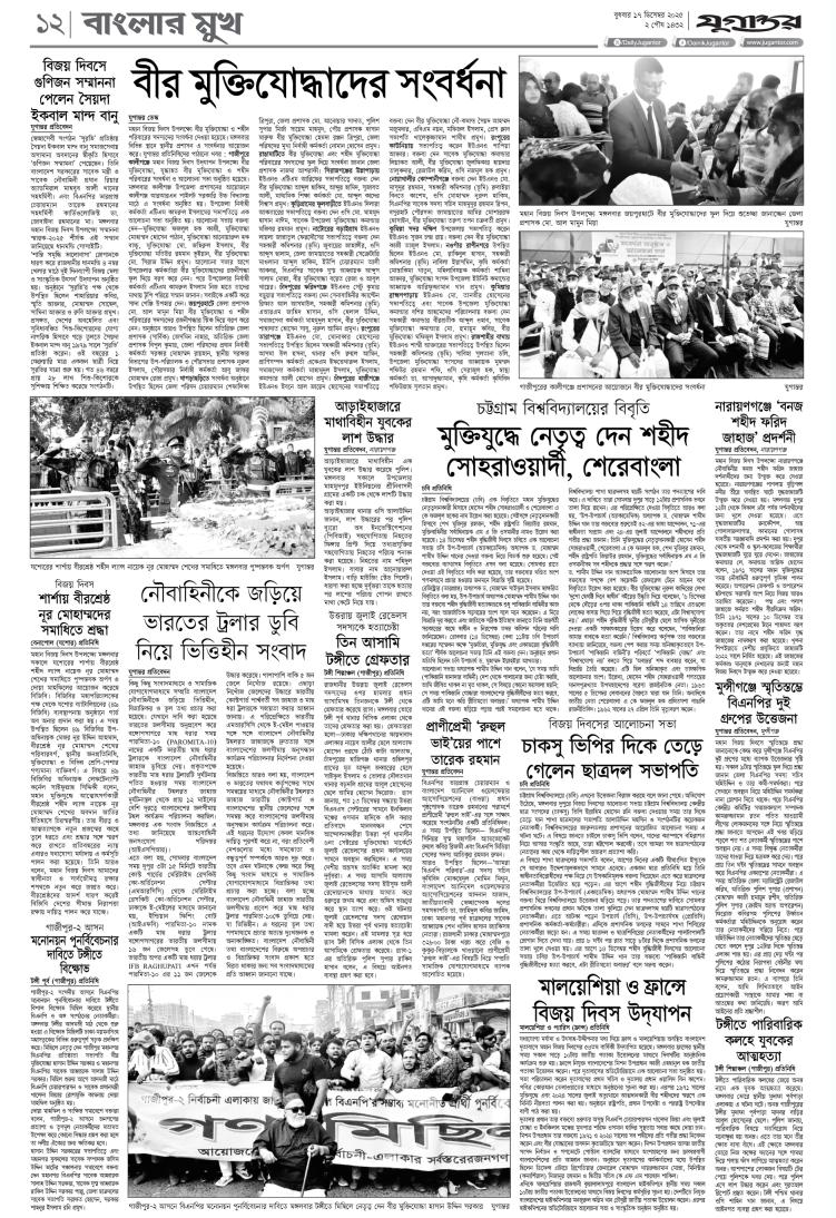 ১. প্রথম পাতা ২.খবর ৩.মহান বিজয় দিবস ৪. সম্পাদকীয় ৫. খবর ৬. খবর ৭. ক্যাম্পাস তারুণ্য ৮. দশদিগন্ত ৯. টিউটোরিয়াল ১০. বাংলার মুখ ১১. বাংলার মুখ ১২. বাংলার মুখ ১৩. খবর ১৪. আনন্দ নগর ১৫. খেলা ১৬. শেষ পাতা
