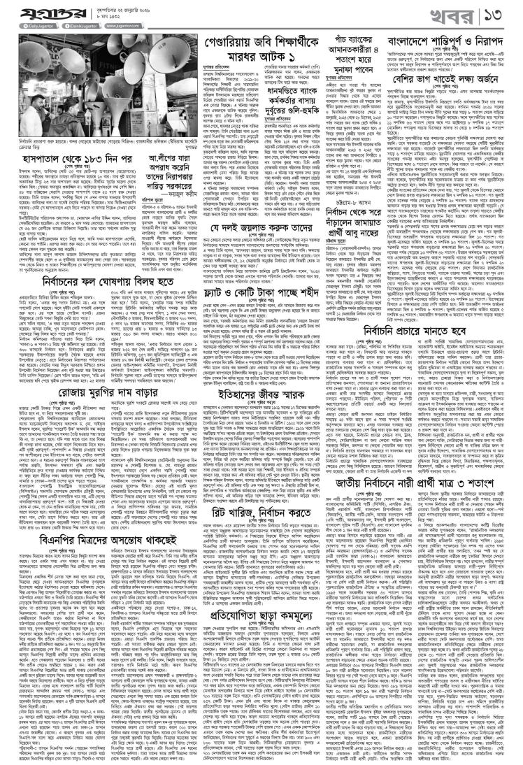 ১. প্রথম পাতা ২.খবর ৩. নগর মহানগর ৪. সম্পাদকীয় ৫. খবর ৬. খবর ৭. খবর ৮. দশদিগন্ত ৯. টিউটোরিয়াল ১০. বাংলার মুখ ১১. খবর ১২. বিজ্ঞাপন ১৩. খবর ১৪. আনন্দ নগর ১৫. খেলা ১৬. শেষ পাতা