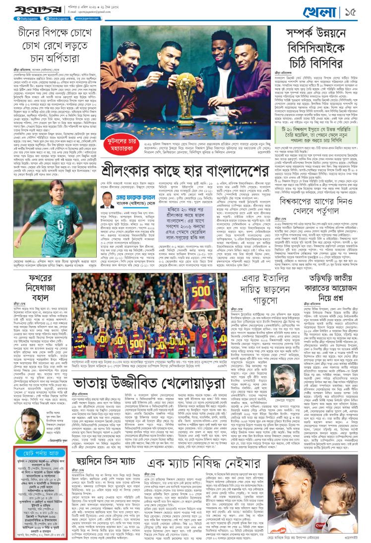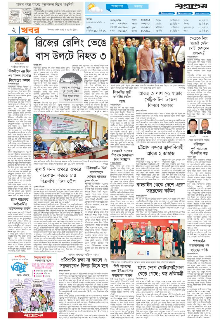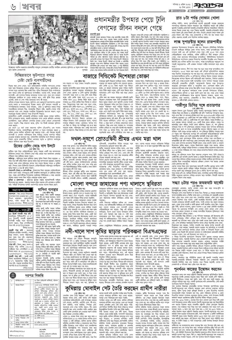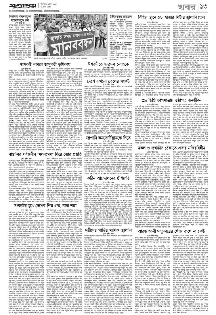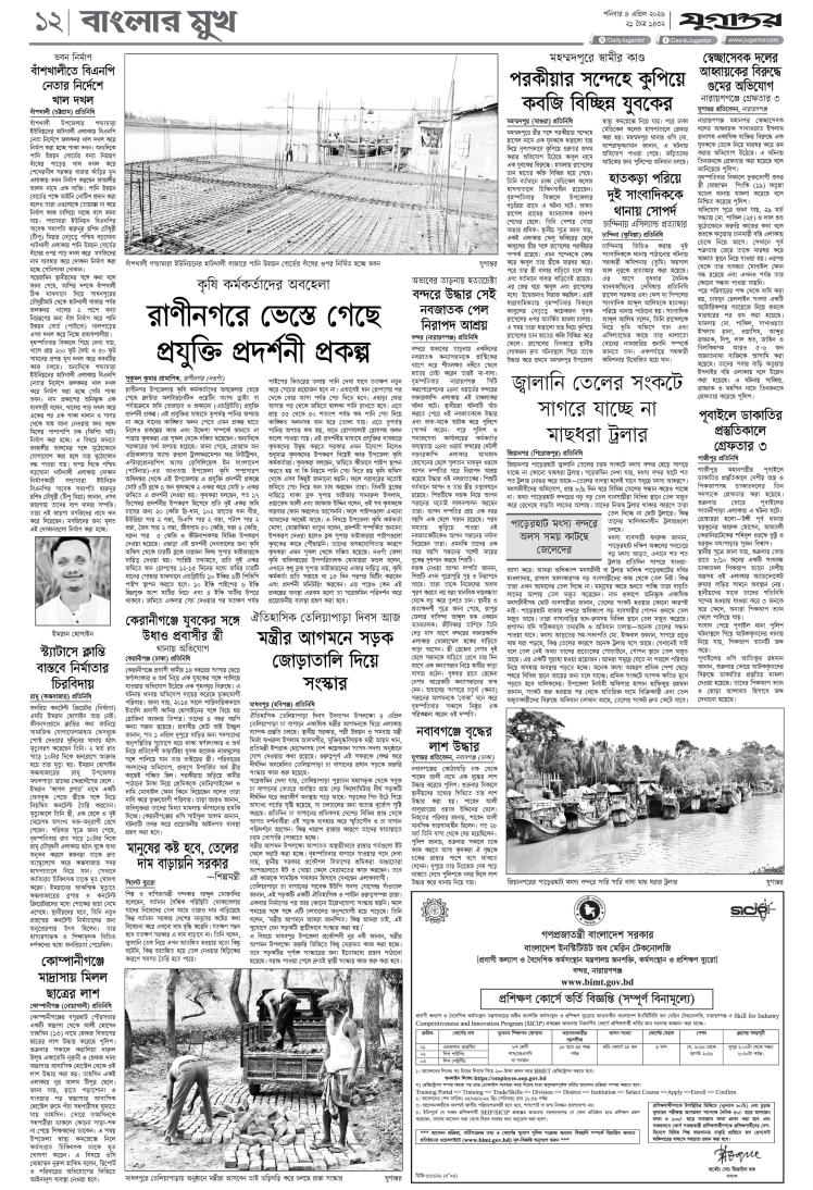 ১. প্রথম পাতা ২.খবর ৩. নগর মহানগর ৪. সম্পাদকীয় ৫. খবর ৬. খবর ৭. সকালবেলার পাখি ৮. দশদিগন্ত ৯. সুস্থ থাকুন ১০. বাংলার মুখ ১১. খবর ১২. বাংলার মুখ ১৩. খবর ১৪. আনন্দ নগর ১৫. খেলা ১৬. শেষ পাতা