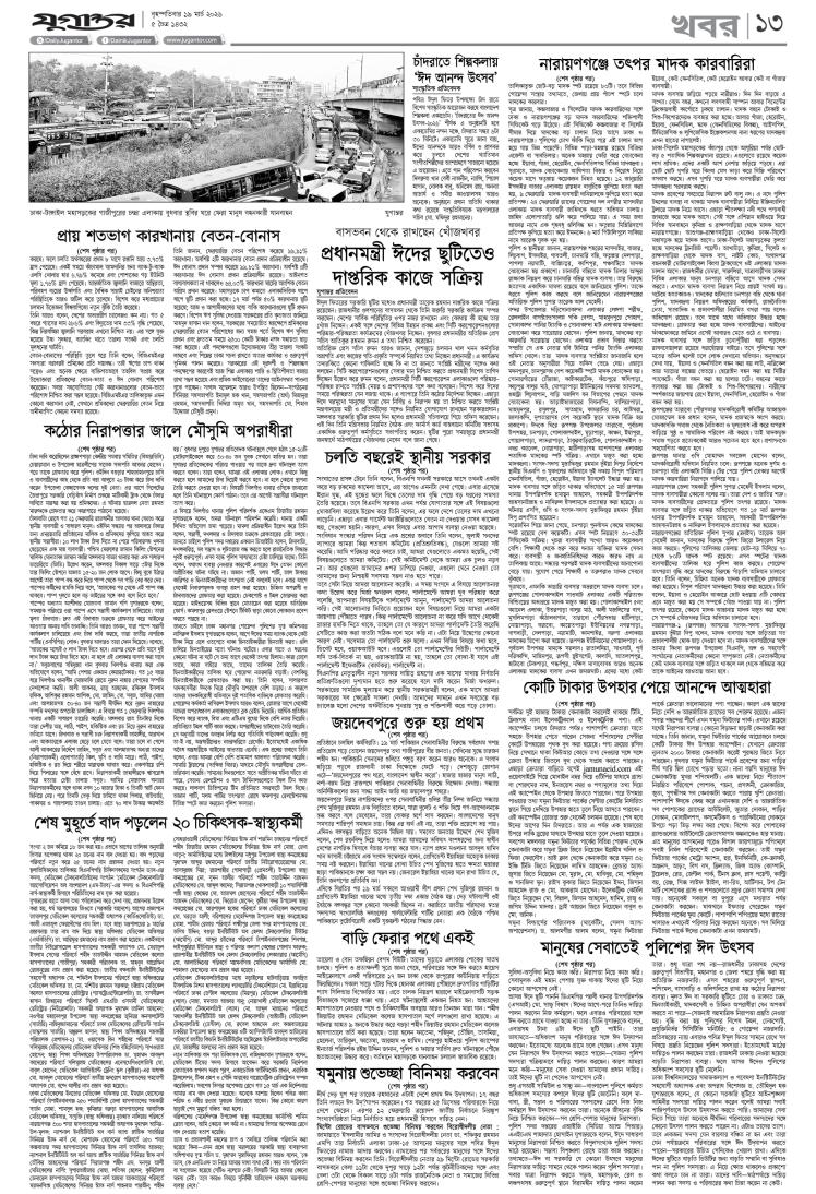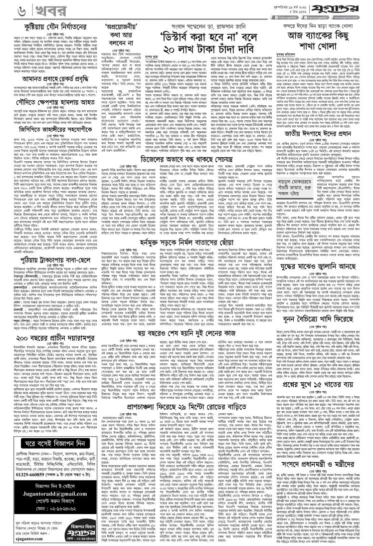 ১. প্রথম পাতা ২.খবর ৩. নগর মহানগর ৪. সম্পাদকীয় ৫. খবর ৬. খবর ৭. খবর ৮. দশদিগন্ত ৯. টিউটোরিয়াল ১০. বাংলার মুখ ১১. খবর ১২. বাংলার মুখ ১৩. খবর ১৪. আনন্দ নগর ১৫. খেলা ১৬. শেষ পাতা